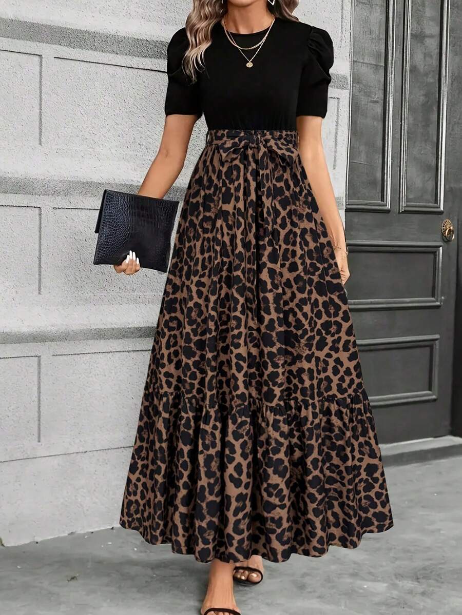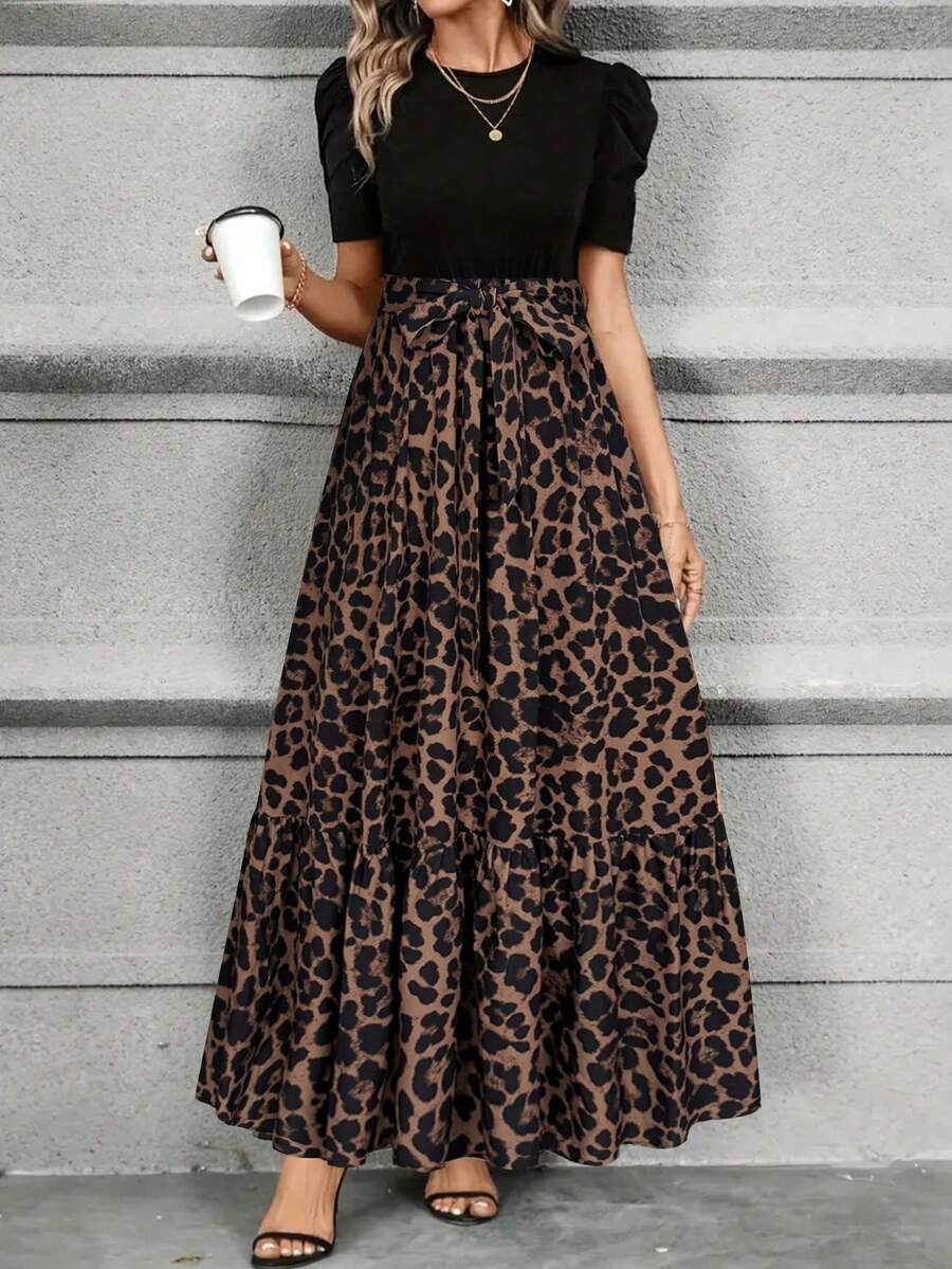 Christmas Keke Bloomly Puff Sleeve Bow A-Line Dress