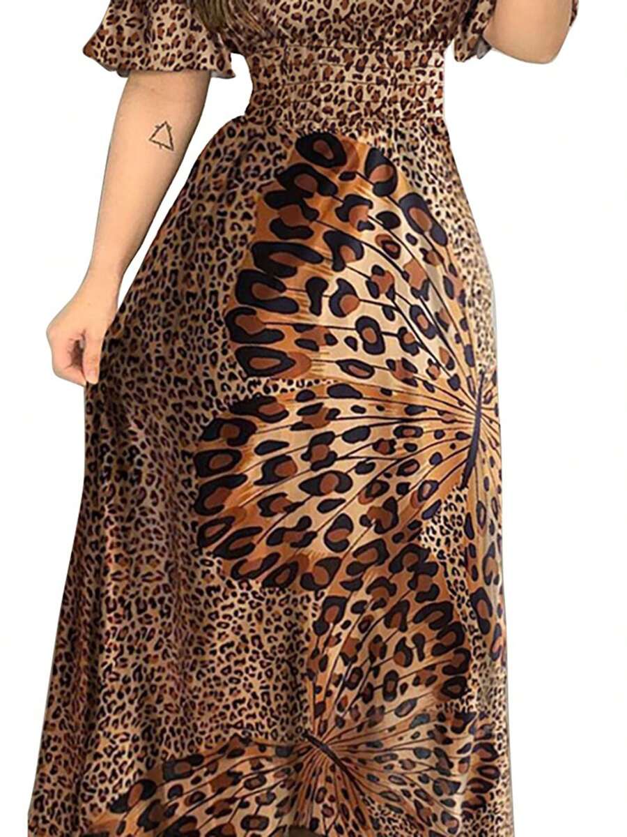 Women’s Leopard Print Off-Shoulder Flared Dress