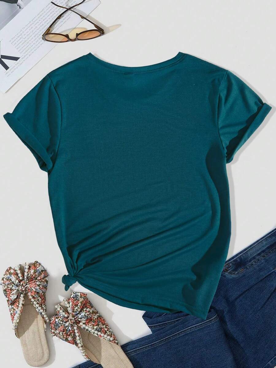 3pcs Women’s Heart Print Round Neck Tees