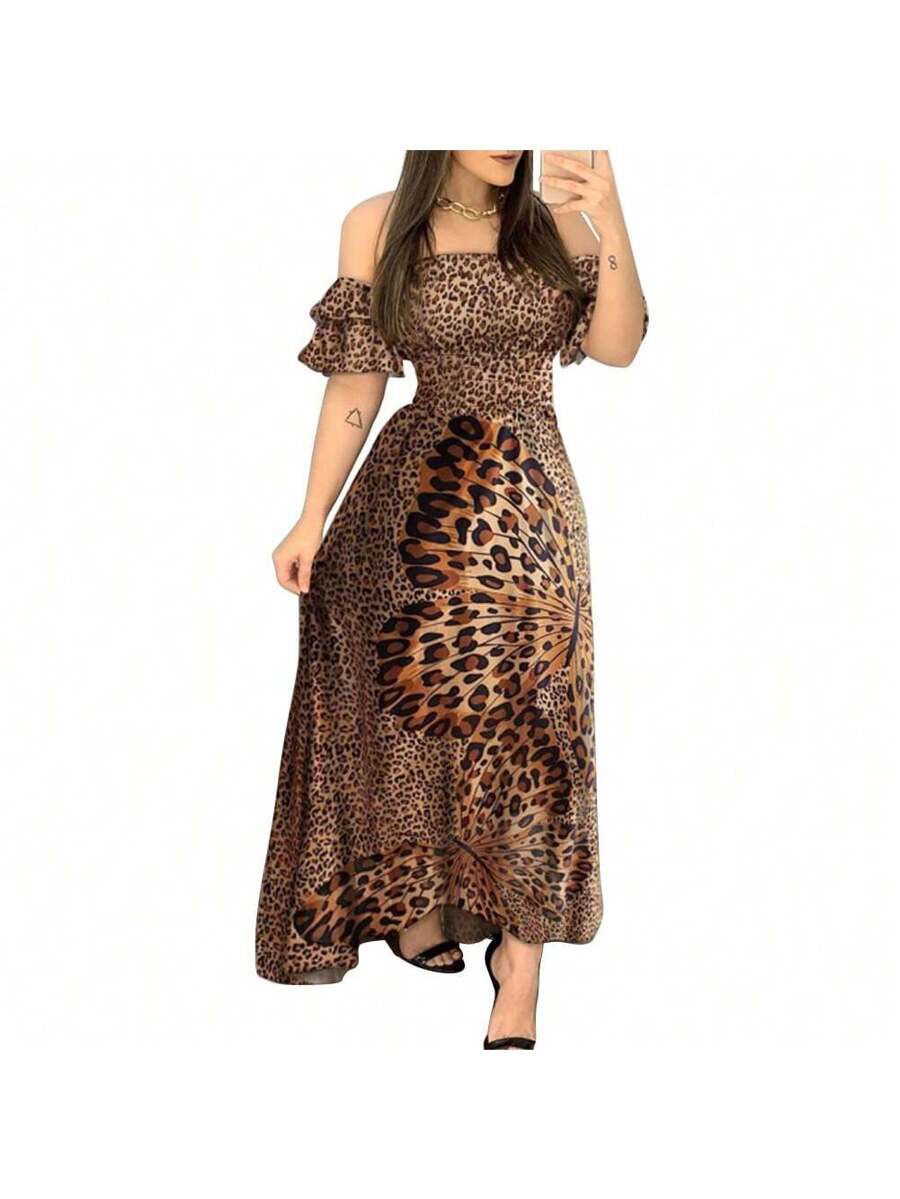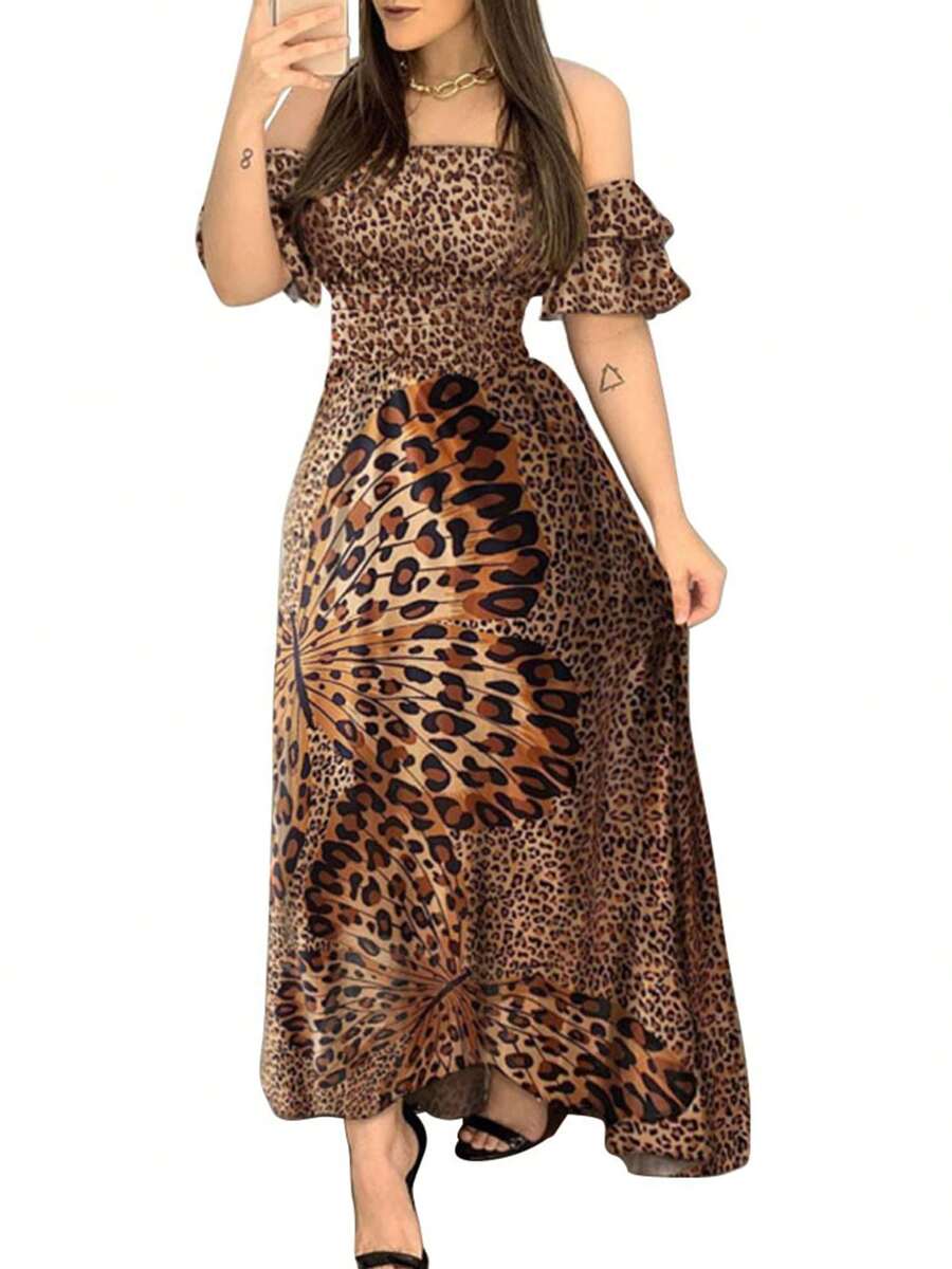 Women’s Leopard Print Off-Shoulder Flared Dress