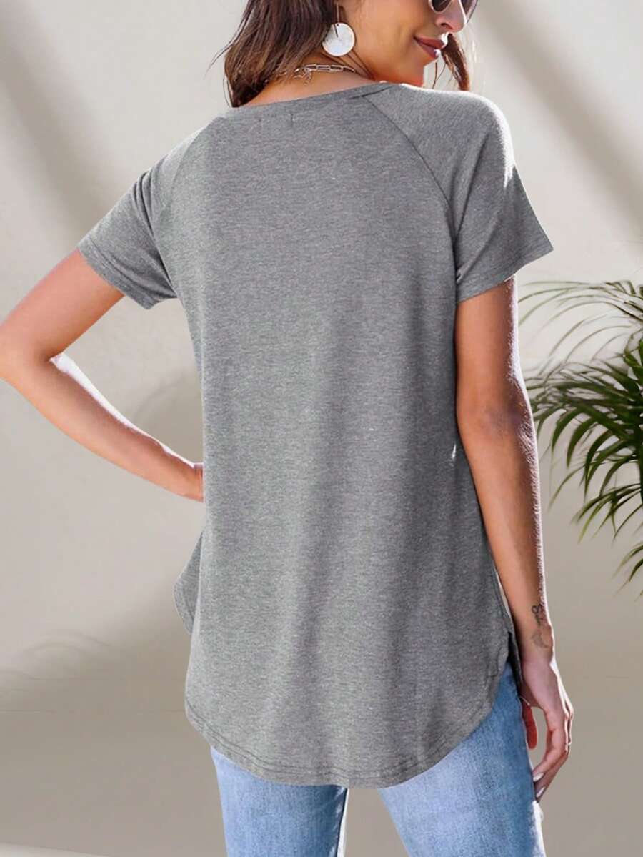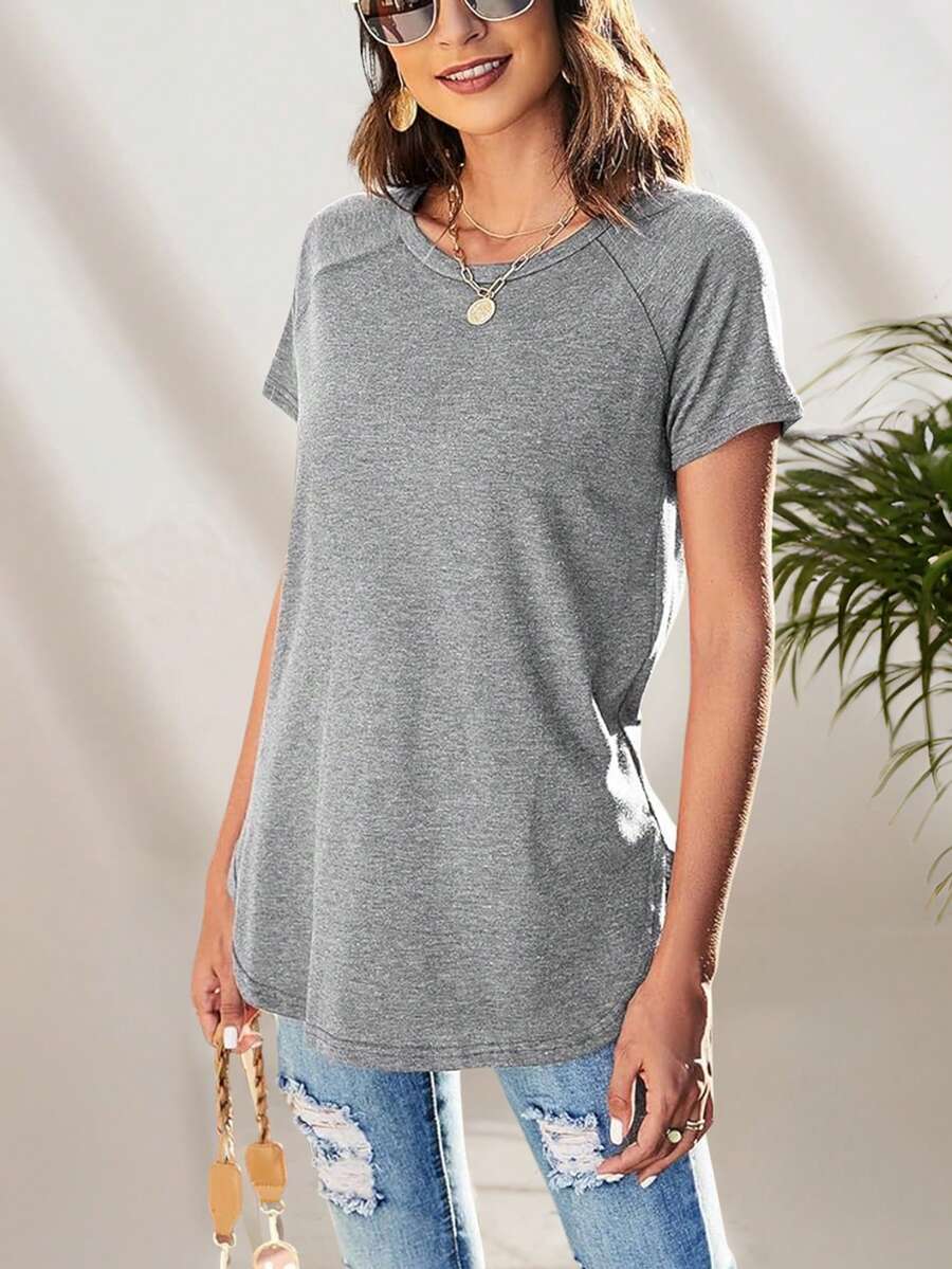 Women’s Gray Round Neck Short-Sleeve Summer Tee